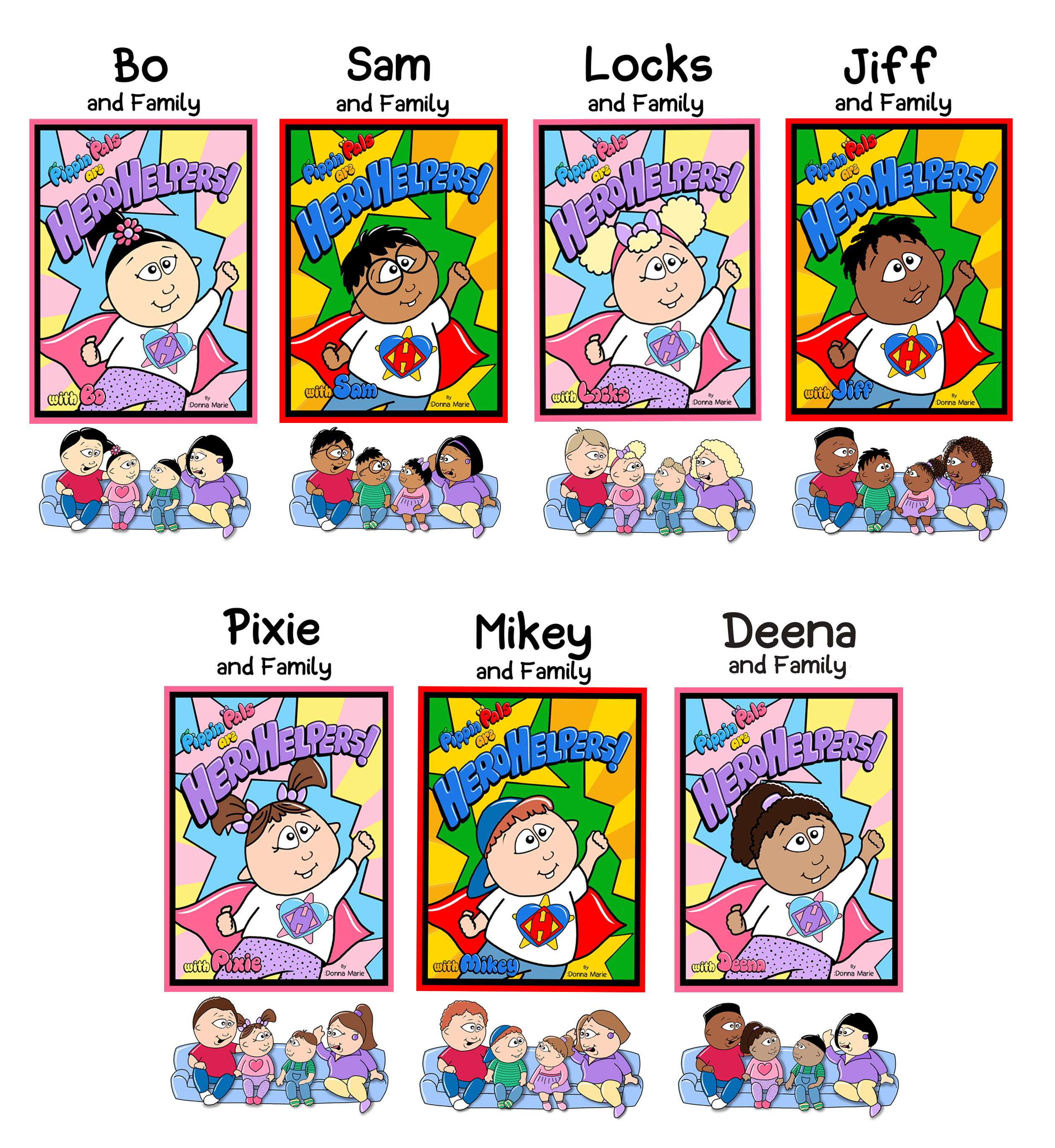 To offer a more personalized experience for the readers, the eight Pippin Pals are Hero Helpers! books are not a series, but diverse and inclusive versions of the same story; you choose the version or versions which align with your or a child’s/student’s preferences for the main characters and their families.