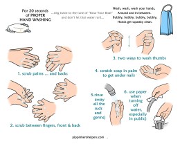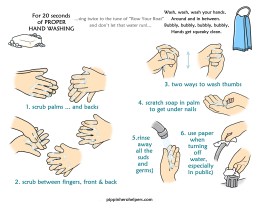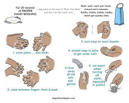 Another key component in being diligent to avoid the passing along of germs is to properly wash hands— often—and avoid touching your face. According to the CDC and other experts such as Dr. Sanjay Gupta, for effectiveness in washing away germs, you must do it thoroughly and for a minimum of 20 seconds. Below are downloadable, easy-to-understand instructions based on the suggestions by these experts. Just click on the version that suits you best 👍😄